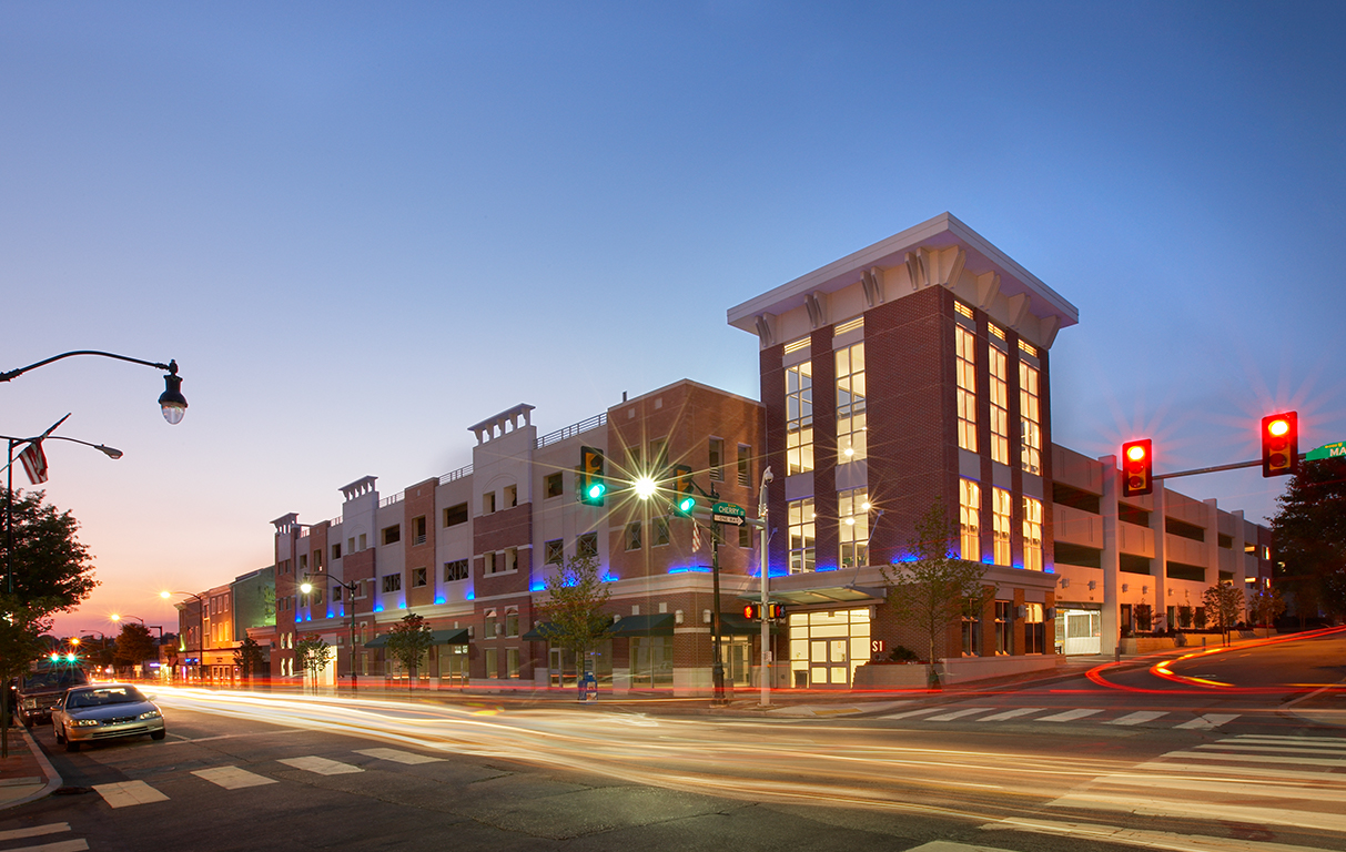 This mixed-use facility in Norristown, Pa includes parking, retail, and restaurant space. This vitally needed parking garage added 483 parking spaces and commercial retail space.