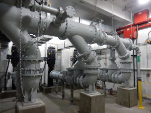 One of the more challenging codes to meet was the Nation Fire Protection Associations standards (NFPA 820) for stormwater pumping stations. Since there is the potential for flammable liquids, such as gasoline, to enter a stormwater pump station, the pumping station wet wells needed to be segregated from the remaining portions of the pump station. The original electrical equipment and controls were placed in the same area as the pump sumps. To segregate the areas, a partition wall was designed and constructed, forming an electrical room, and separate ventilation systems were installed. To access the electrical rooms, airtight gasketed stainless steel doors, which are commonly used on offshore oil platforms, were used.
