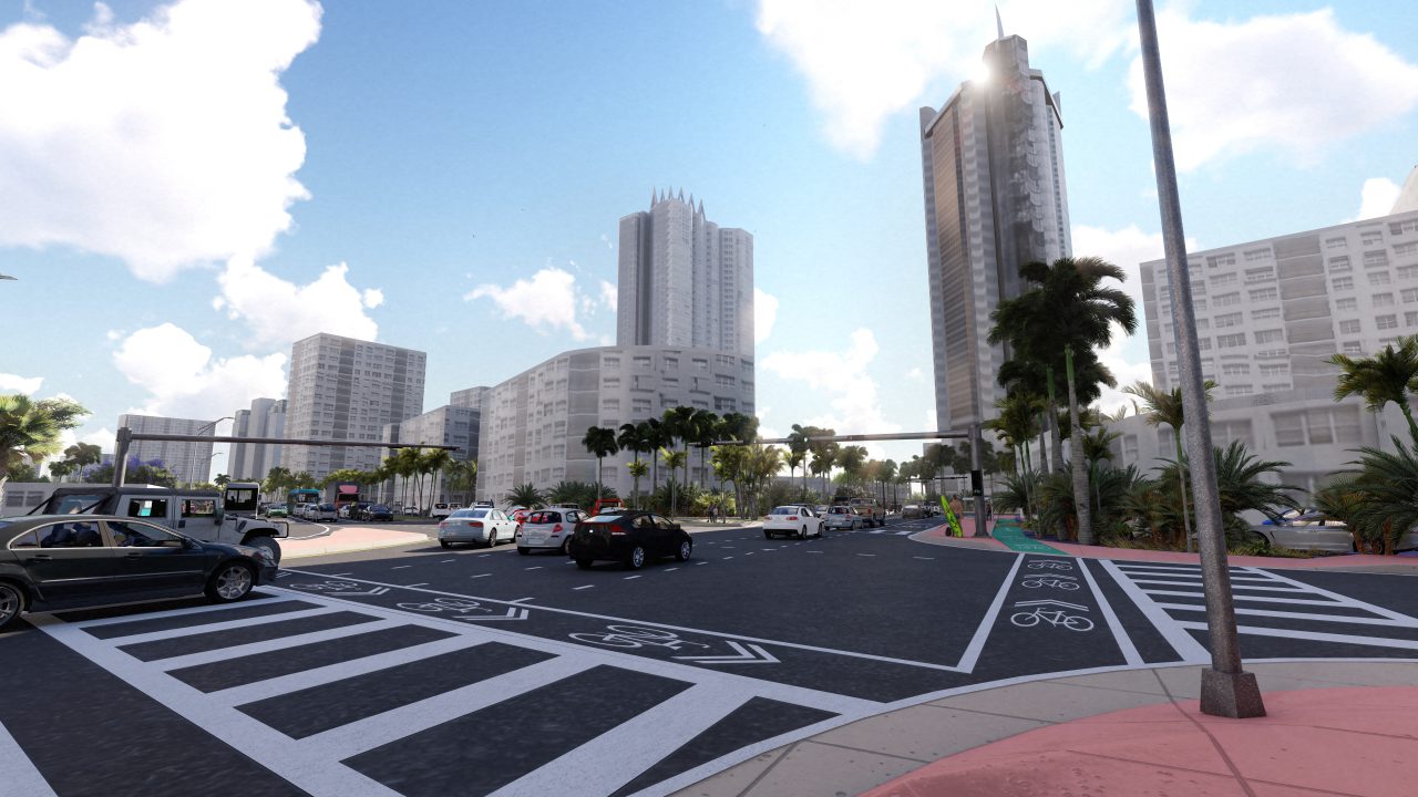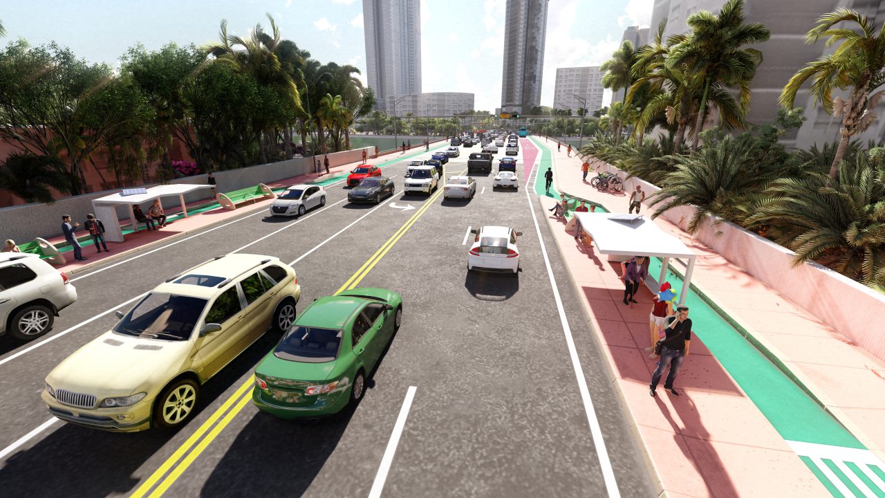 The City of Miami Beach required a 3D animation of the 63rd Street corridor project from the intersection with N. Bay Road to the intersection with Collins Avenue. The animation focuses primarily on the East-West portion of 63rd Street and depicts existing and proposed conditions. The animation will serve as a visual aid during key team and stakeholder meetings to demonstrate the proposed concept improvements, as well as showcasing the anticipated flow of pedestrian, bicycle, and vehicular traffic. The project is being performed by the City of Miami Beach as part of a corridor-wide complete streets initiative to improve safety and user experience for pedestrians and cars alike. The project includes new bus shelters and dedicated bus lanes, as well as buffered bicycle and pedestrian sidewalks.