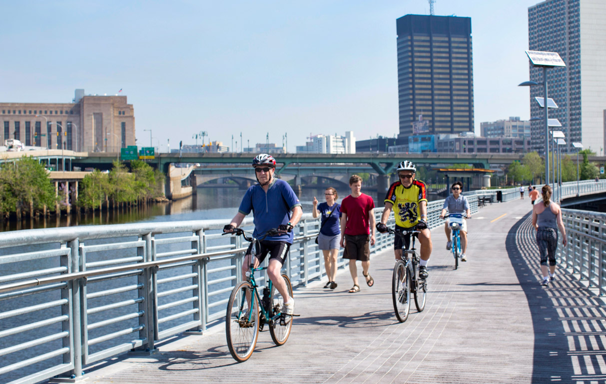 The Schuylkill Banks Park and trail in Philadelphia is approximately 10 miles in length, providing recreational space in the center of this beautiful and historic city and serves thousands of pedestrians, runners and cyclists daily. The land between the railroad tracks and the river becomes too narrow to continue the Schuylkill River Trail southward on land past Locust Street. To solve this problem, the City of Philadelphia and SRDC built a 2,000-foot-long concrete structure, the “Boardwalk”, running parallel to the eastern shore of the river from Locust Street to the new stair tower on the south side of the South Street Bridge. Pennoni provided civil, structural, and electrical engineering services, stormwater management design and permitting, erosion control design, and the design of an LED lighting system at the recreational plaza.
